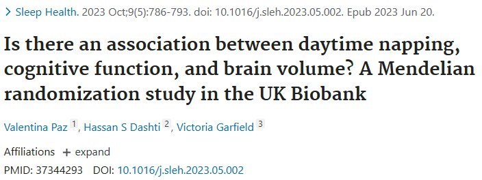 《Sleep Health》上曾发表过一项研究,研究人员通过基因随机化实验分析了午睡与认知功能、脑容积之间的相关性。结果发现,午睡与更好的认知功能、更大的脑容积相关,愿意午睡的受试者在认知测试中的表现更好。