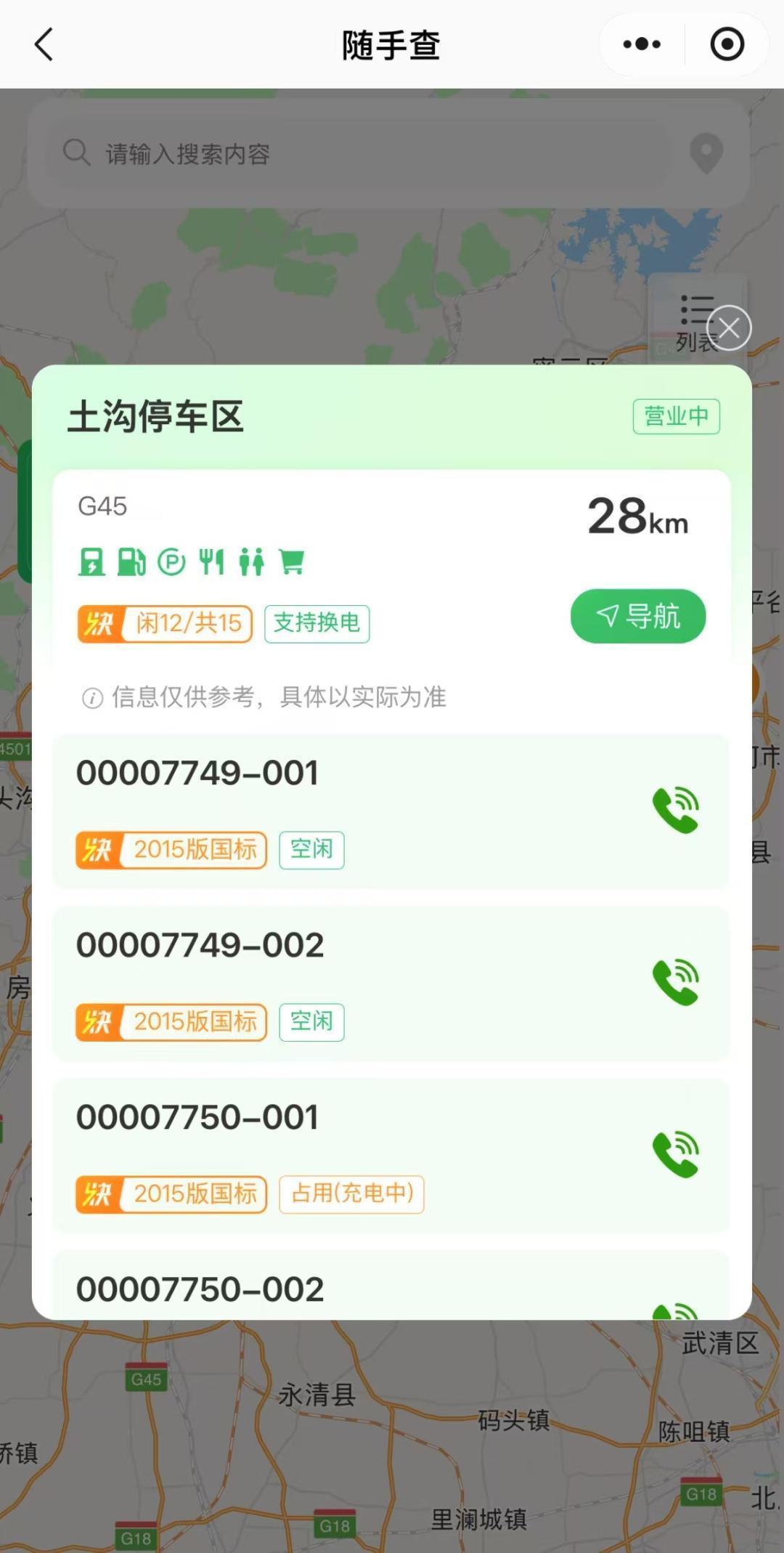 即可查看附近的充电设施信息,